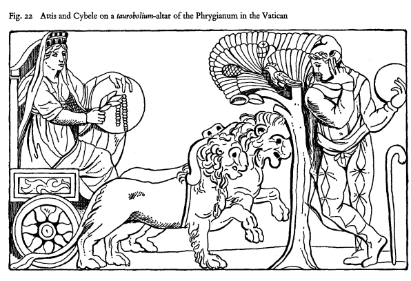 * The “green tree” was not a generic reference to nature worship. In the cult of Cybele, the evergreen pine was sacred as the symbol of her consort Attis, whose death and rebirth were ritually commemorated through a cut pine tree. This tree represented Attis himself; castrated, slain, and renewed; making groves and evergreen trees central locations for her rites. The biblical command targets these specific cult sites, where fertility, death, and resurrection were ritually reenacted under sacred trees.